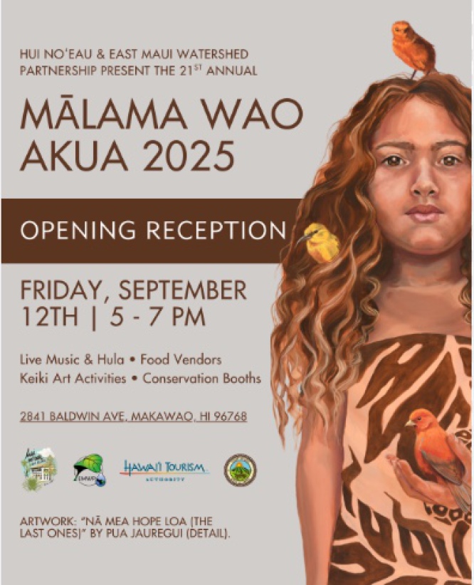 The double koru and makau (slender fish hook used to catch shallow water reef fish) represent the abundant worlds of the earth, sea and sky working together as one while remaining separate, just as the many cultures of Maui do. The mottled background was inspired by the dark and colorfully tangled jungles of East Maui.