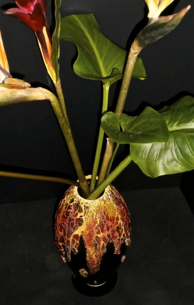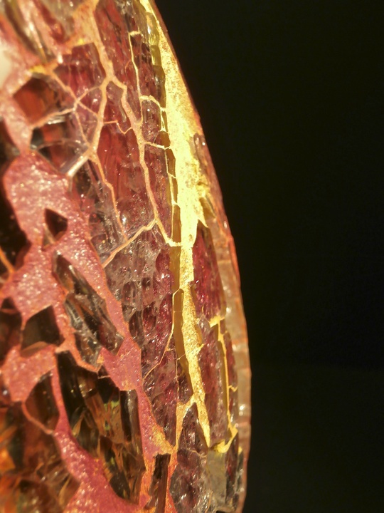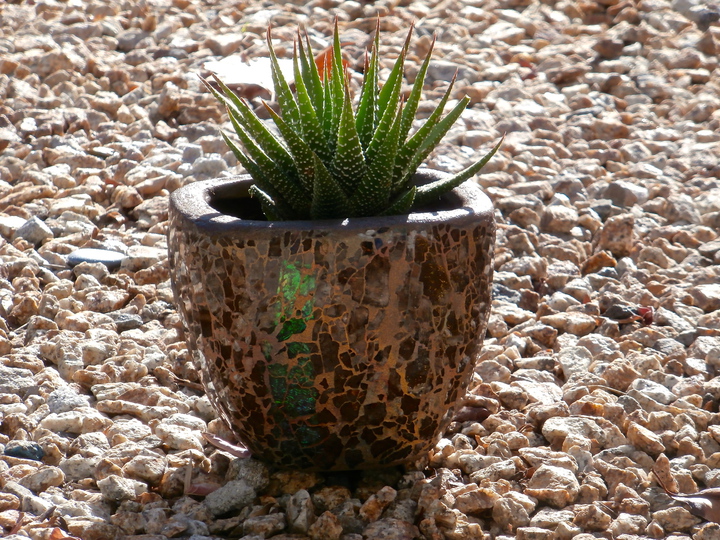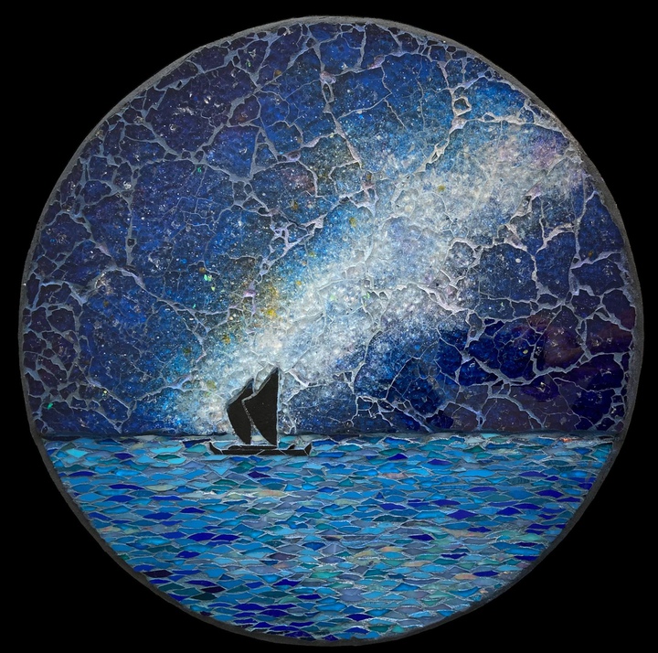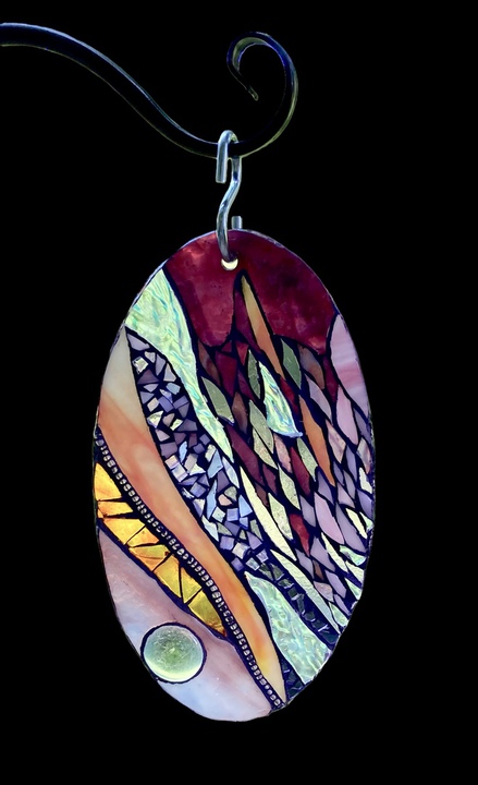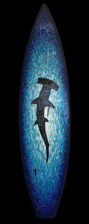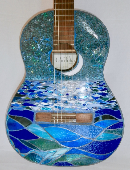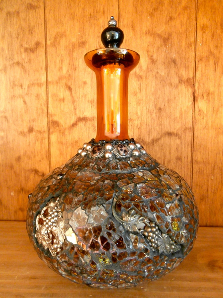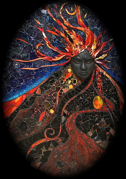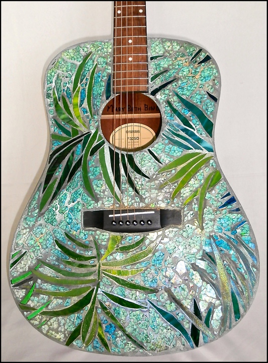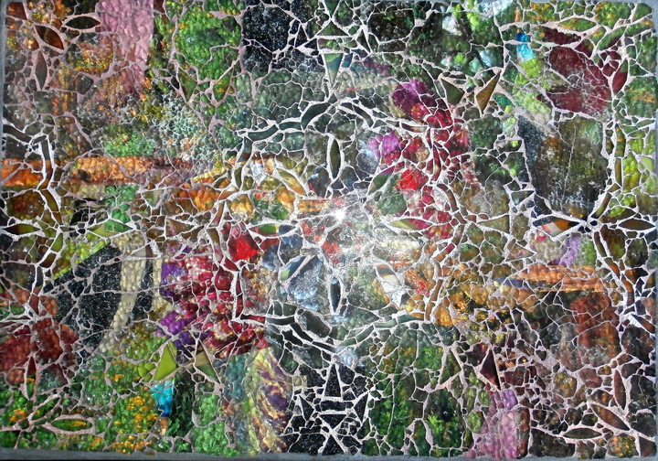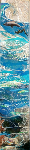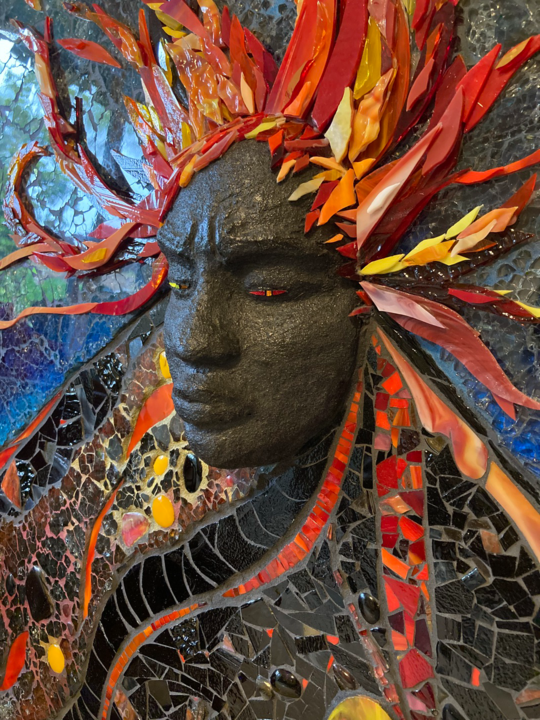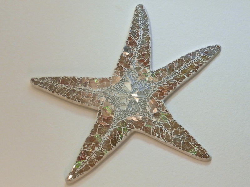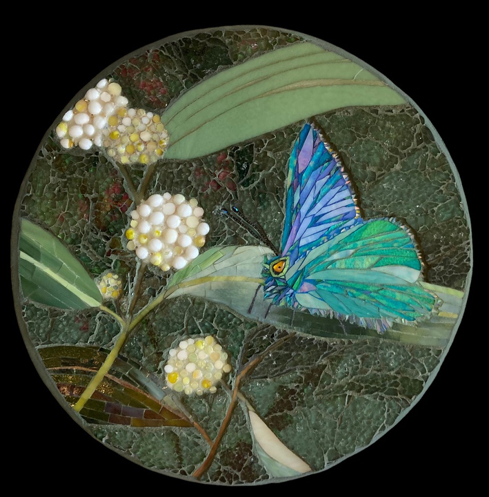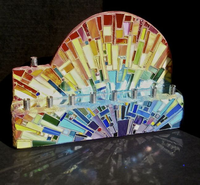 Each mosaic is unique, and is lovingly created in a meticulous process in which different art mediums, industrial strength epoxies, glass, colored grout, and materials such as jewels,