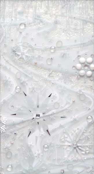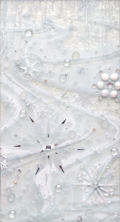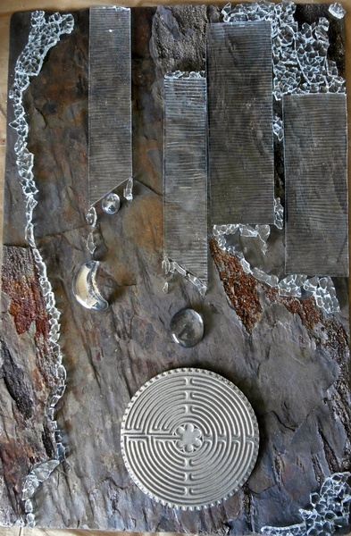 beads, mirror, metal, stone, shells and ceramics may become part of a design created on a